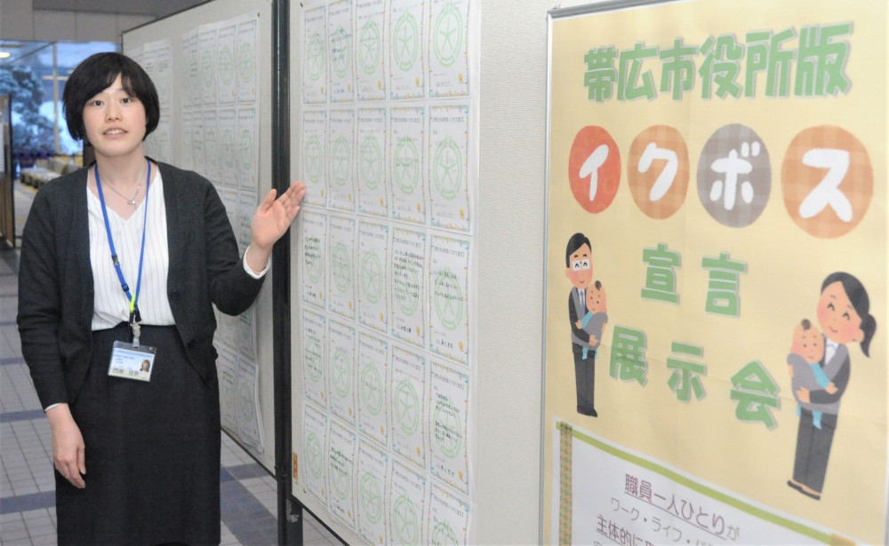帯広市役所1階の市民ホールで、「帯広市役所版イクボス宣言」の展示会が開かれている。19日まで。