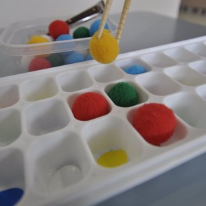 プログラムは個別療育といって、担当の先生とお子さんが机に向かい合って、用意した課題を一緒に行います。私は今、年中さんと年長さんを担当していますが、最初は簡単なもので、色のシールのところに同じ色の洗濯ばさみを挟んだり、ペグで絵を描いたりします。色のマッチングなど簡単なところから始め、まずは一緒にお勉強するという時間を楽しいと思ってもらうところから始めます。その中で個々の成長段階に合わせた内容を考え「出来たね」を積み重ね、“やってみよう”という気持ちを育みます。その気持ちが頑張る気持ちに繋がっていき、次のステップとして少しずつ難しいこと、手先が必要なものへと進めていきます。